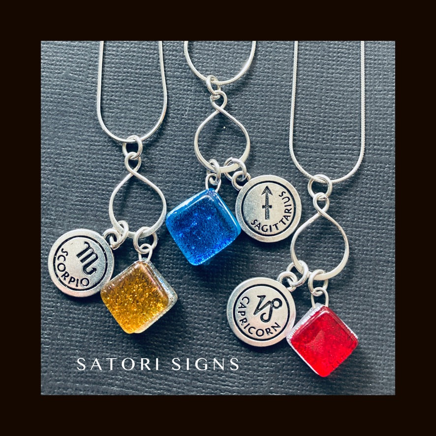 The Good Chi Necklace includes your choice of word, charm and color. It is handcrafted with glass, sterling silver and love.