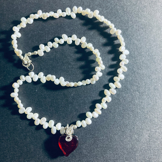 Satori Red Heart with Sterling & Pearls