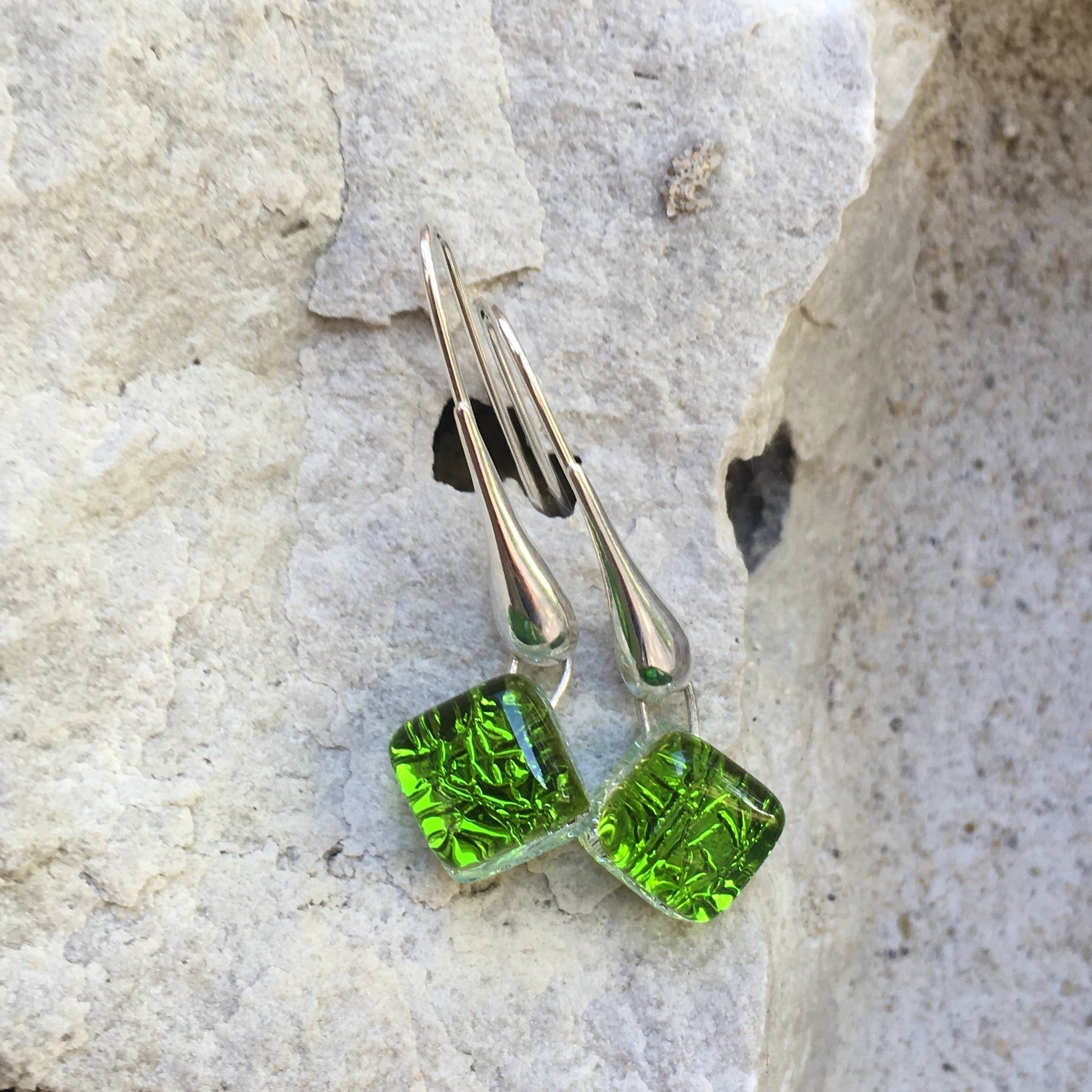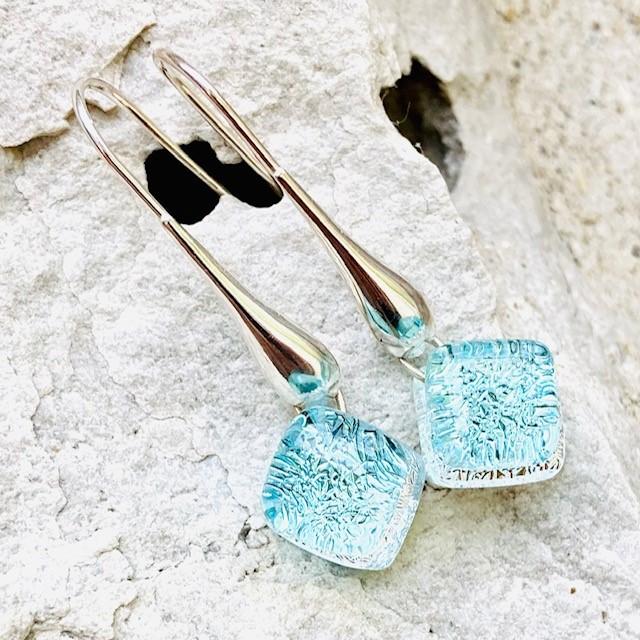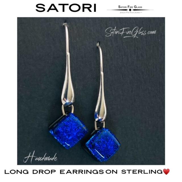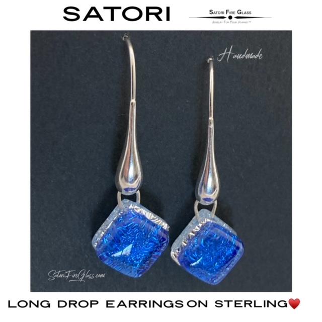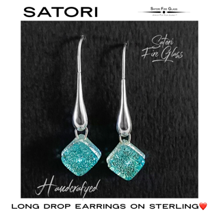Handmade Satori Diamond Shape Glass Long Drop Earrings on