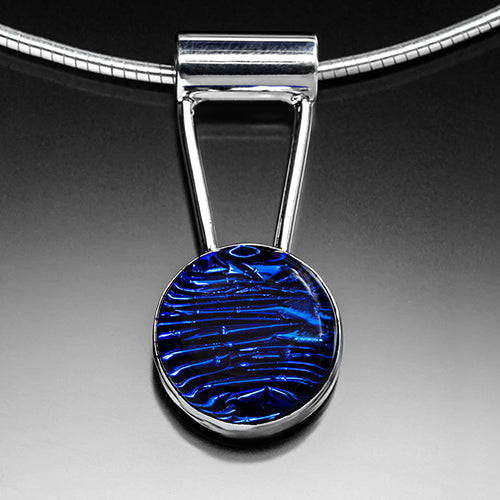 Handmade Deep Cobalt Glass Circle set in sterling silver