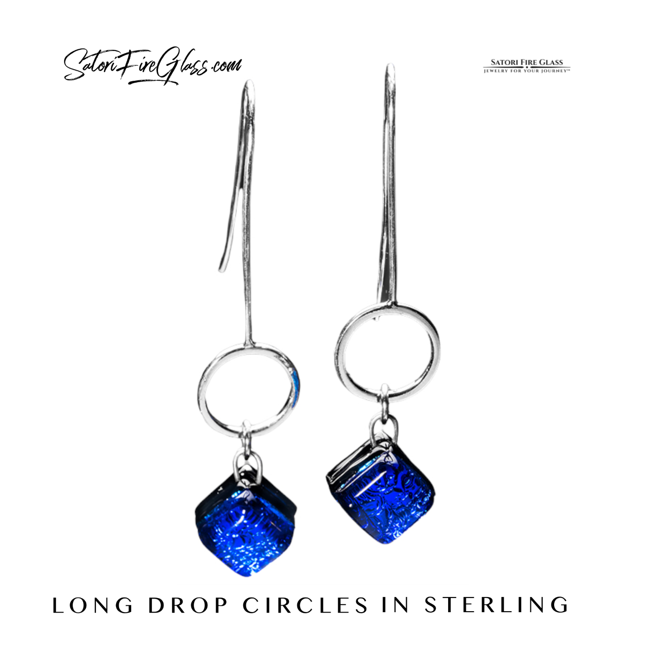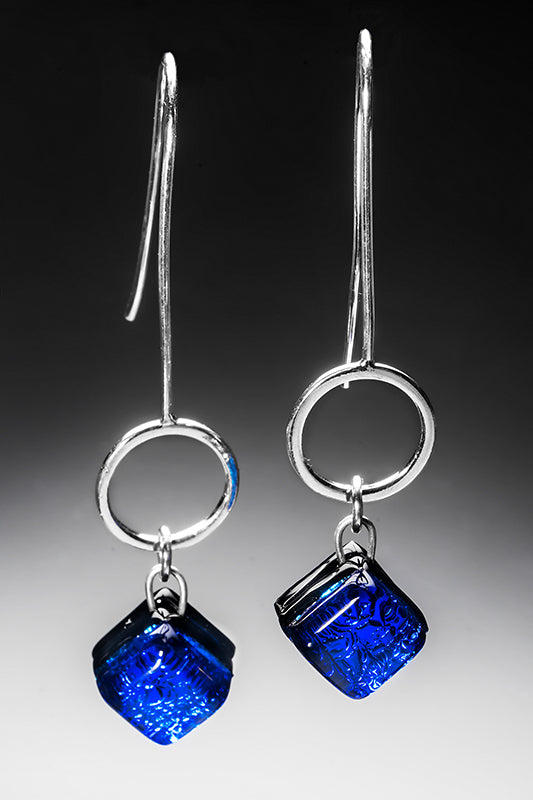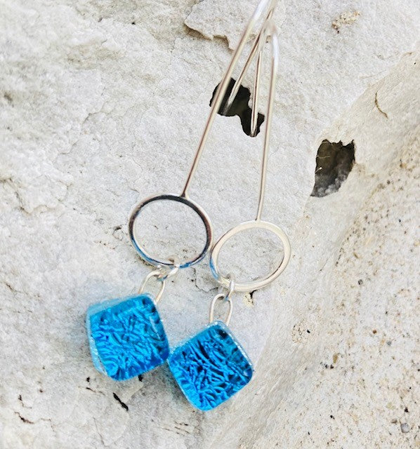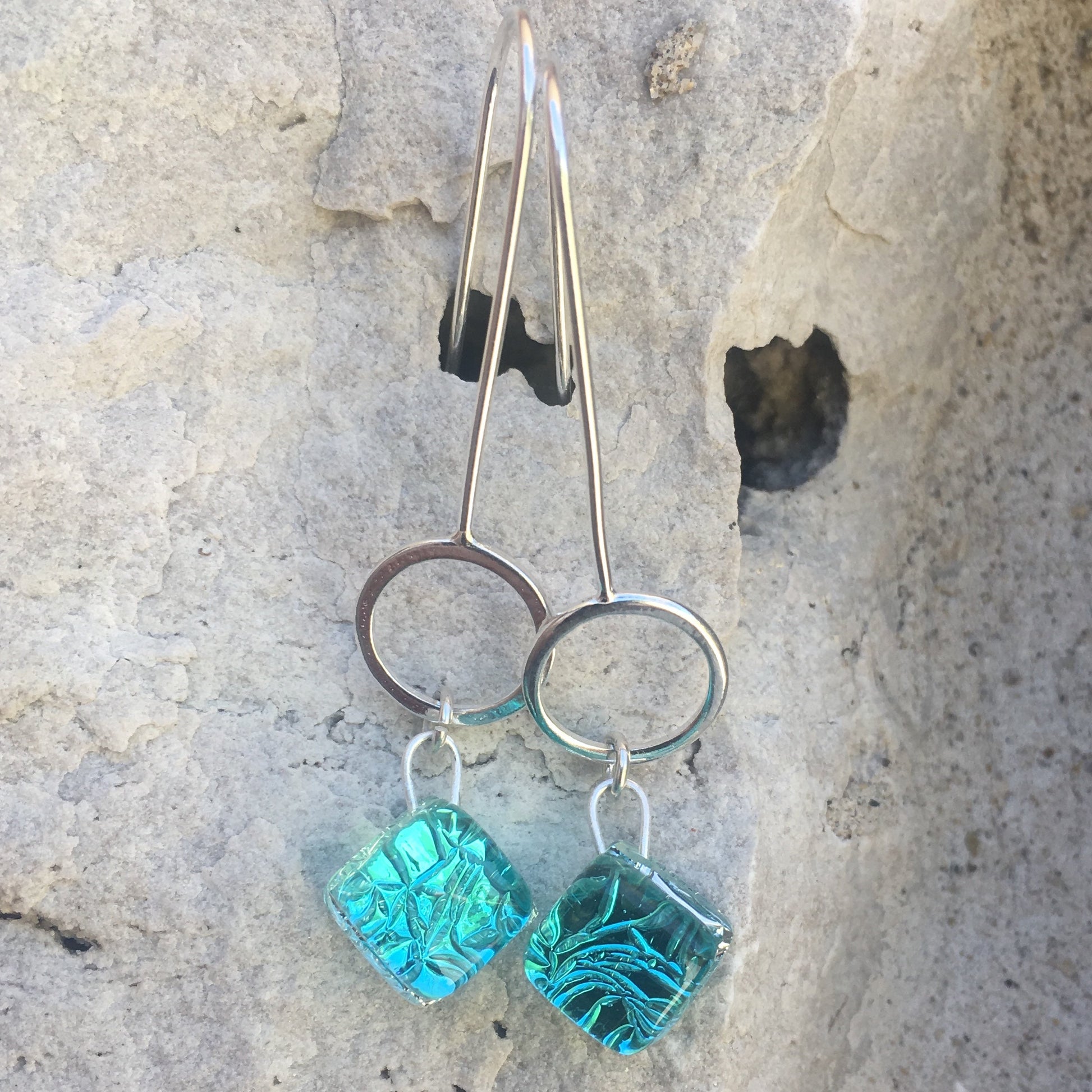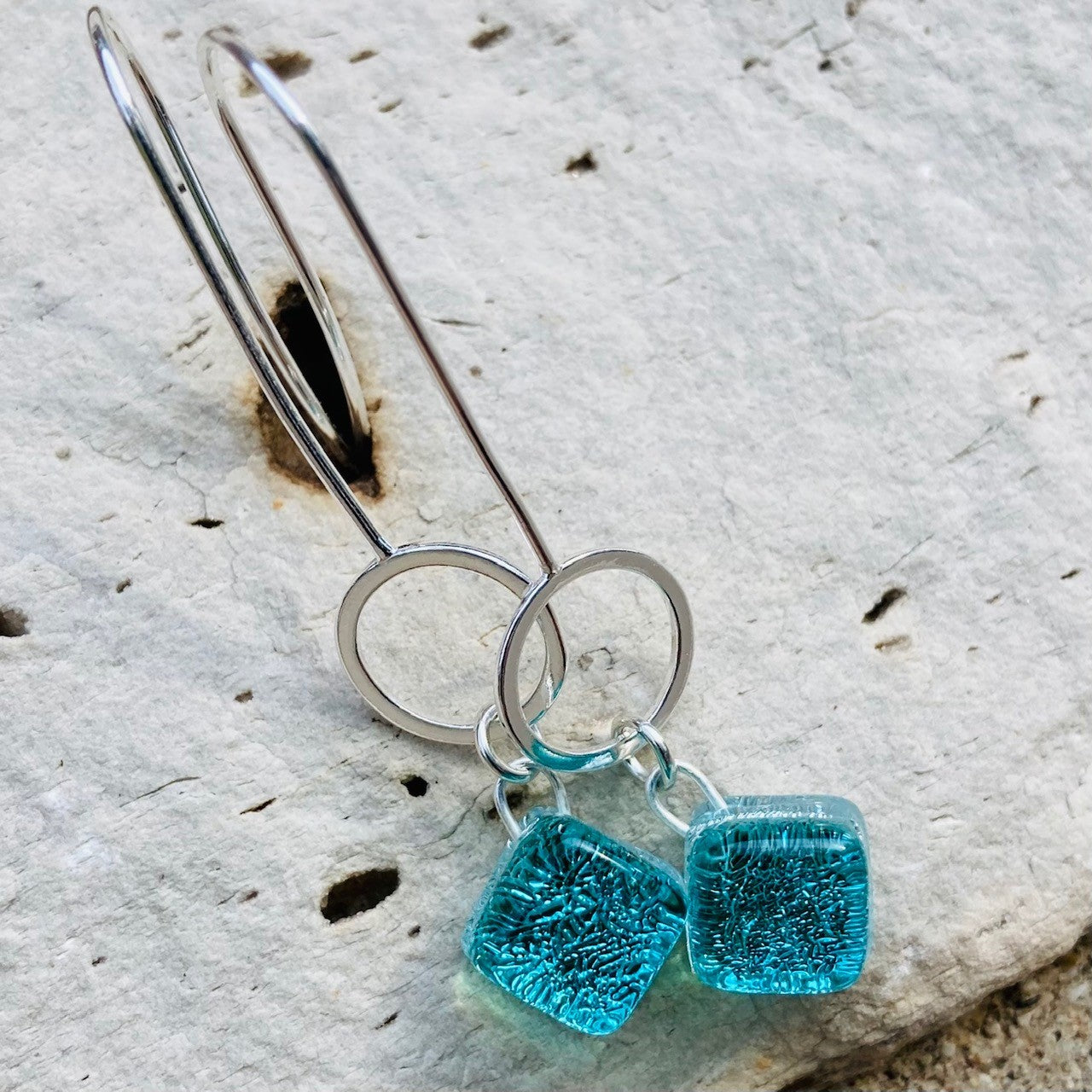 Handmade diamond shaped glass pieces on sterling silver circle ear wires