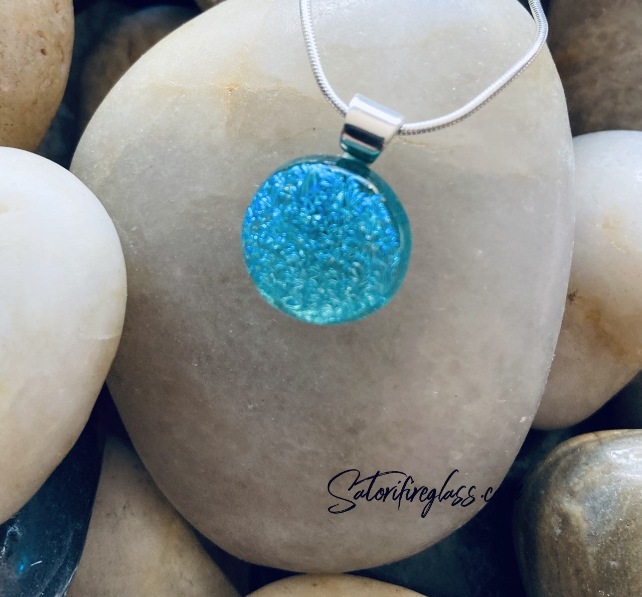 Handmade dichroic texture glass pendant.