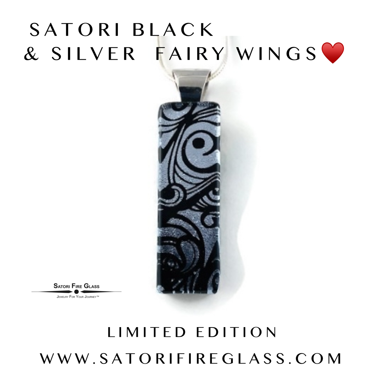 Black & Silver glass with sterling silver bail. Each Piece is unique!