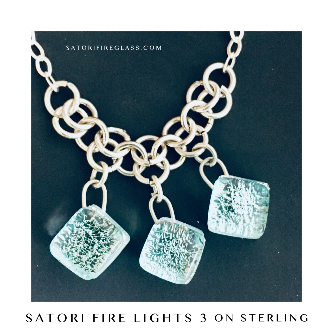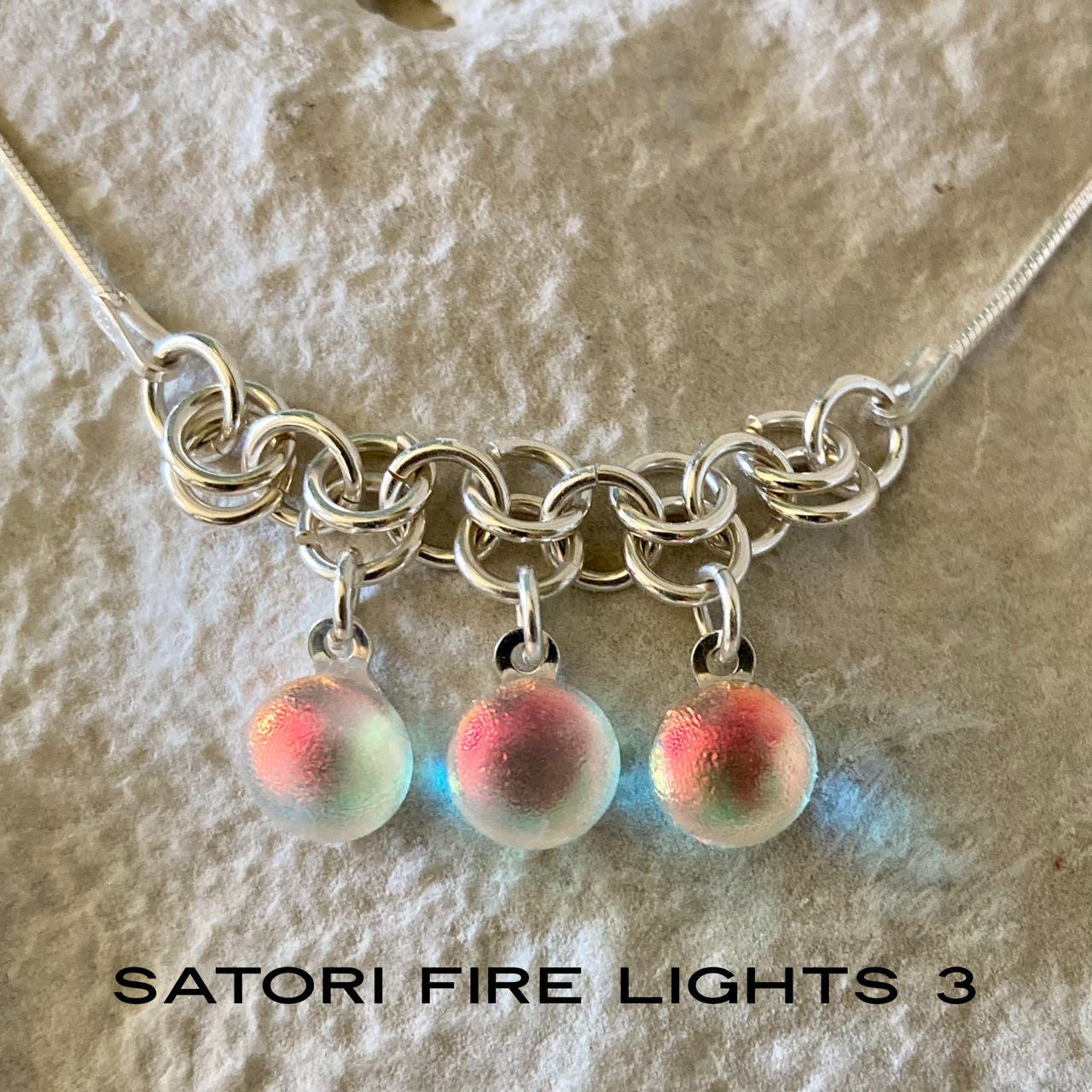 3 Satori Fire Lights approximate size :.25 " on a Sterling Silver Bar on a Sterling Silver Chain. On a Sterling Silver Chain