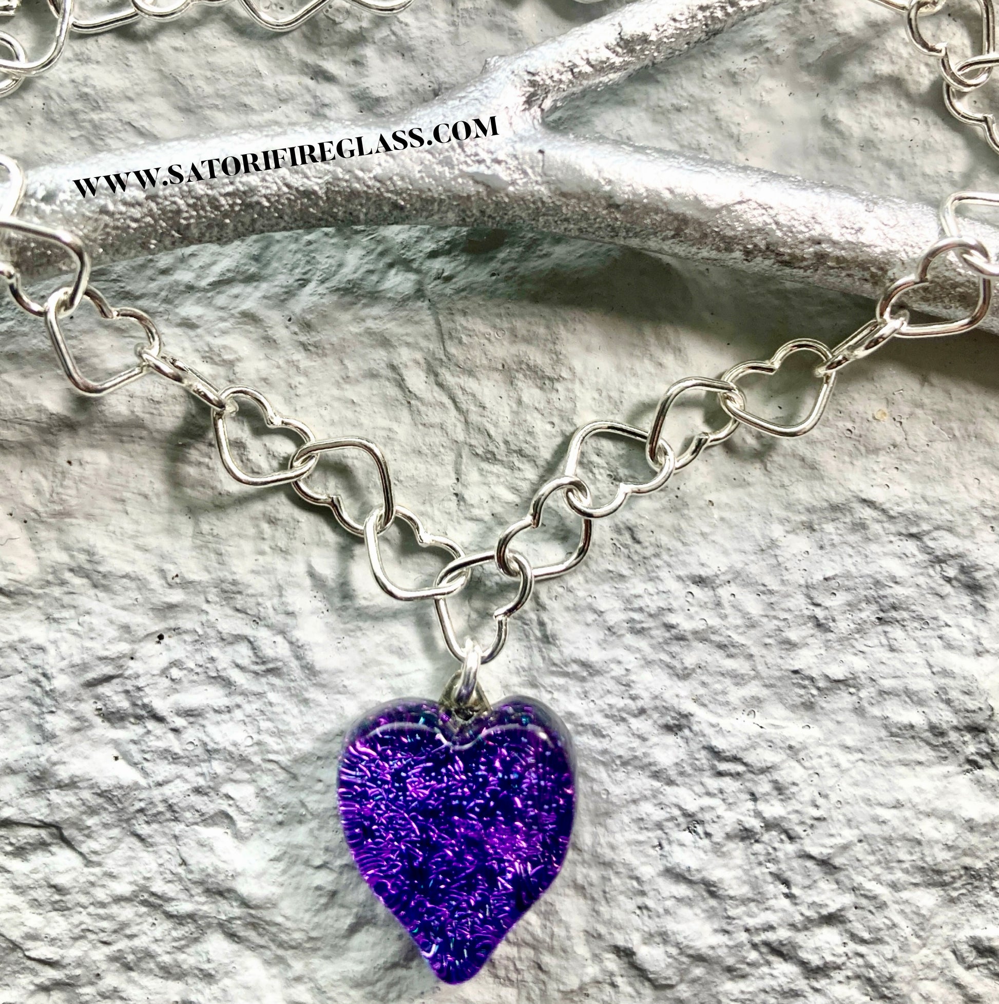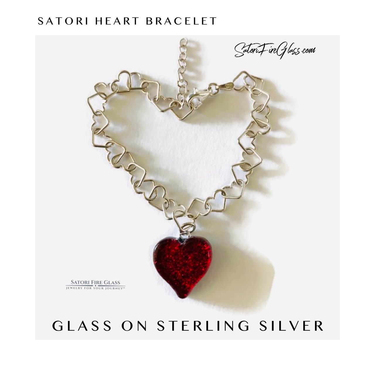 Handmade Satori Small Glass Heart Bracelet on Sterling Silver Heart Chain