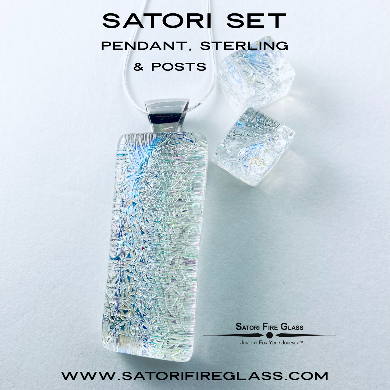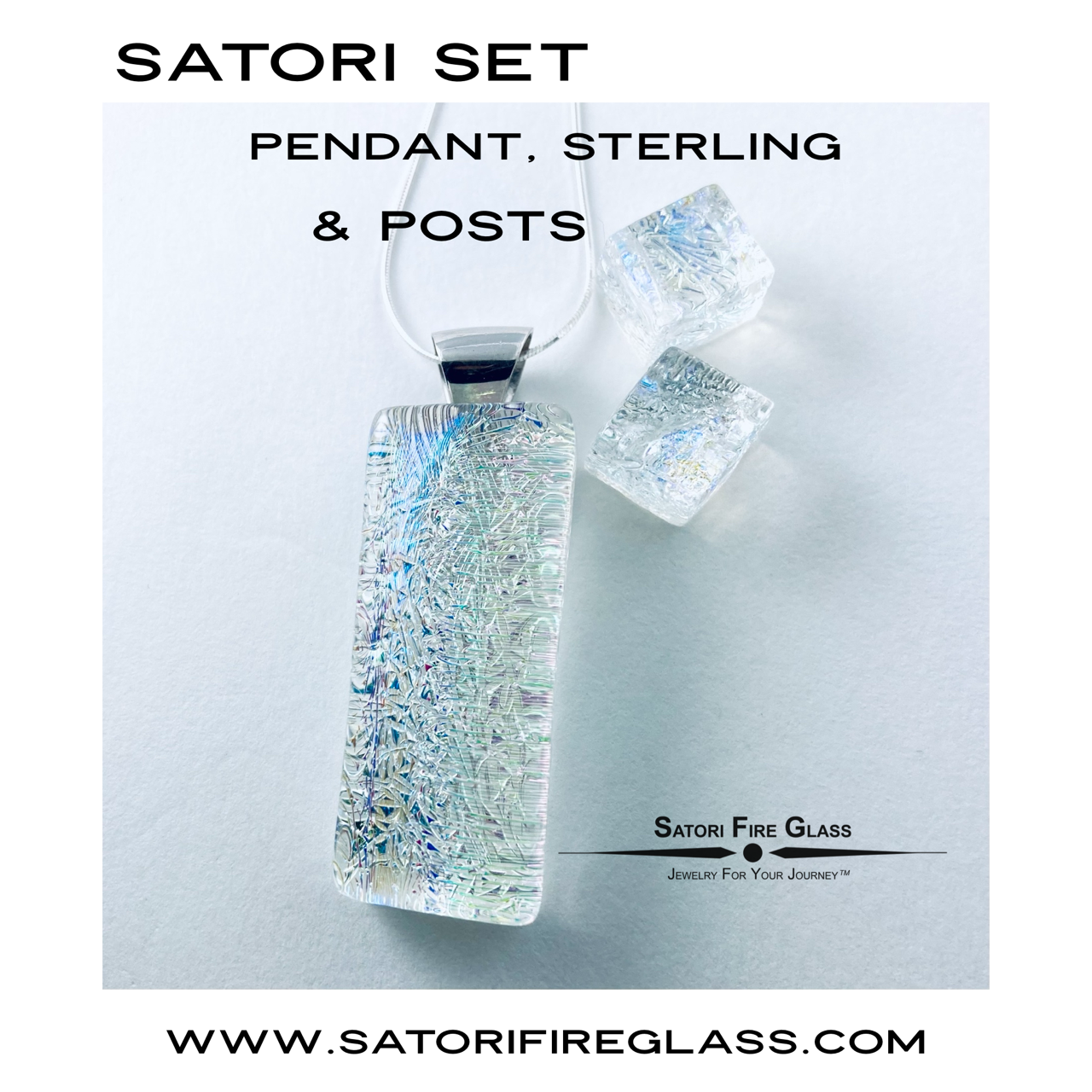Satori Rectangle Pendant with 18" Sterling Silver Chain Paired w/ Post Earrings